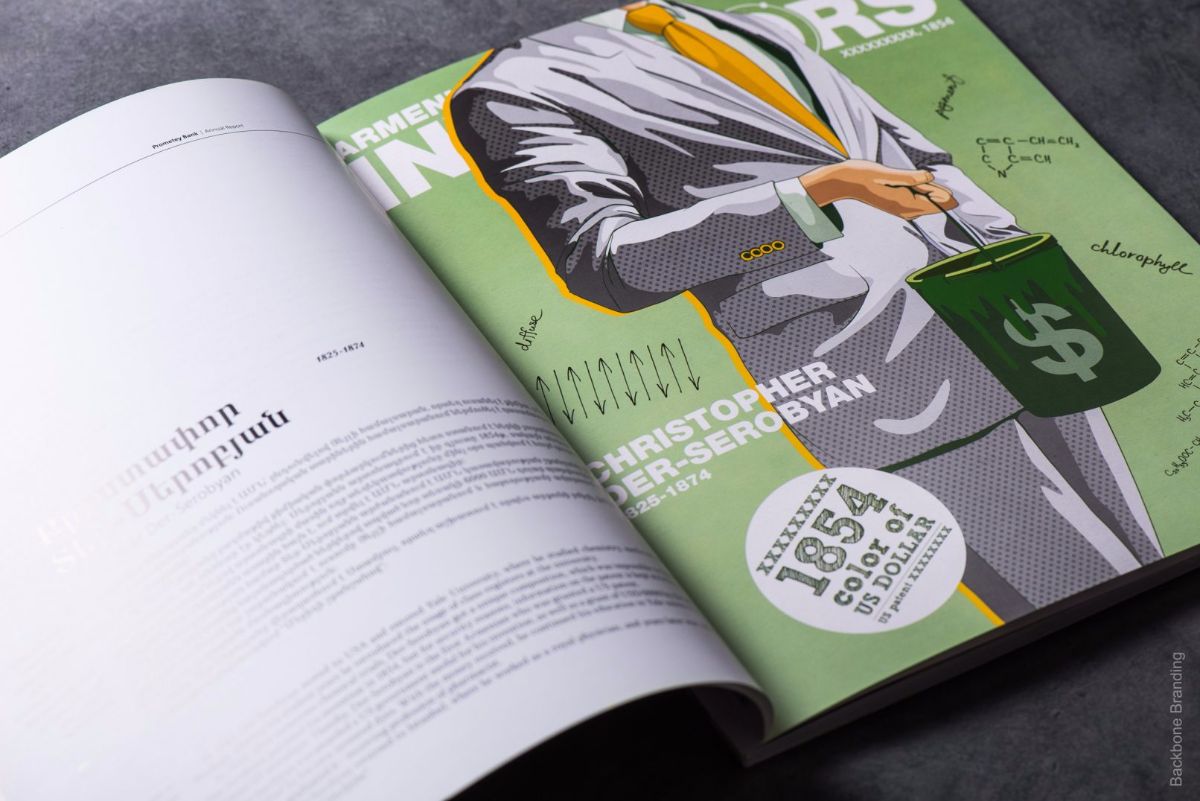 We developed unique and original illustrations for each chapter of the annual report. The best way to present the inventor and the invention together was illustrating them in interaction.