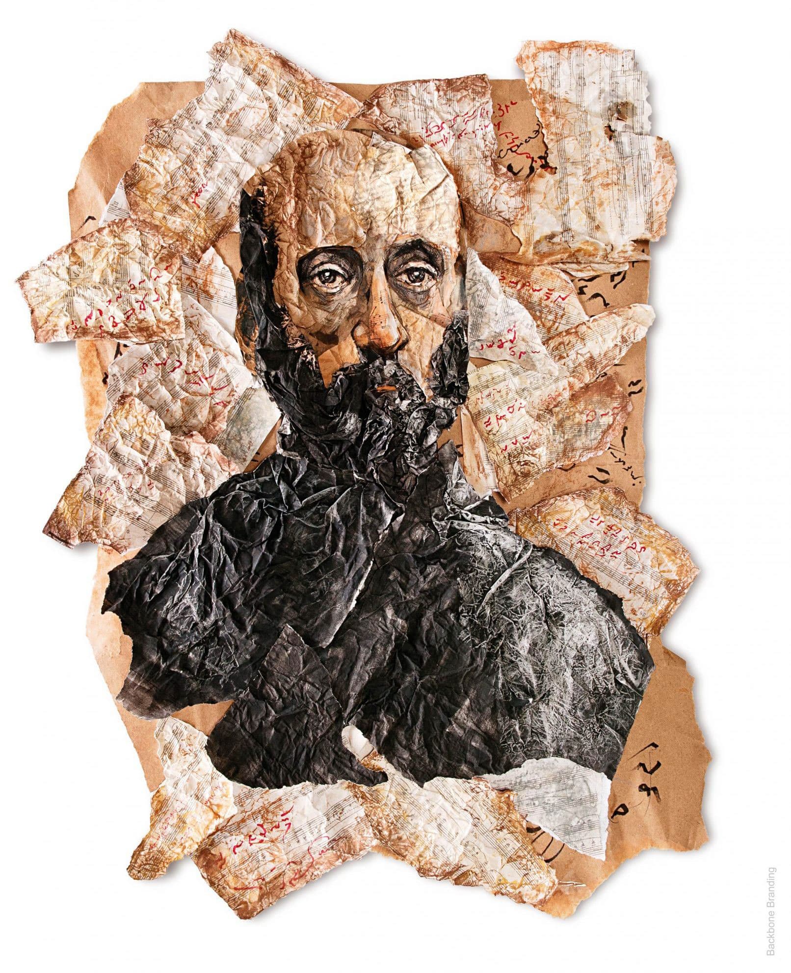 We clearly understood that the task was a very responsible one. Our team honed on the idea of conveying uniqueness of each outstanding person. Eventually, we chose the concept of portraits drawn or collaged in the style highlighting the art of their representatives. As a result, we had several unique portraits and no doubt left, that the illustrations communicated the genius of all 12 outstanding persons.